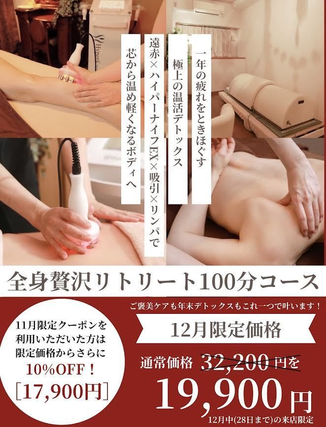 12月中はもう一つ、全身を徹底的にリセットできる【全身ご褒美100分コース】もございます!