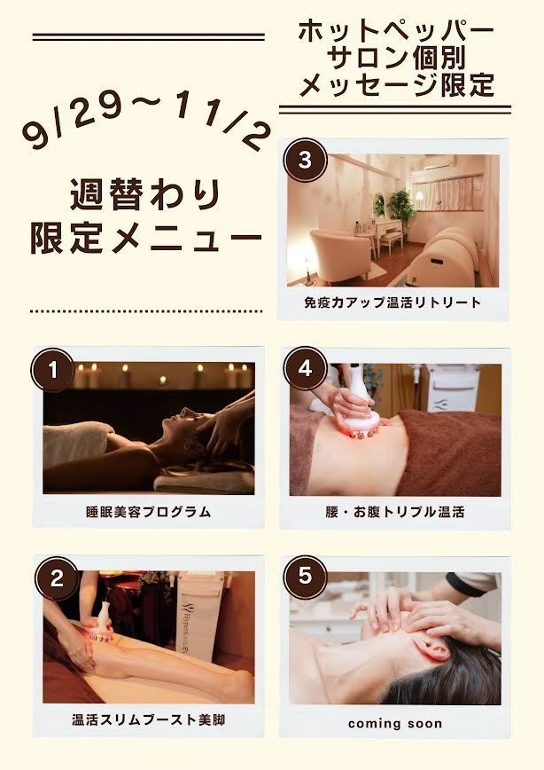 9/29日(月)から【週替わり・サロン個別メッセージ限定クーポン】がスタートしています☆